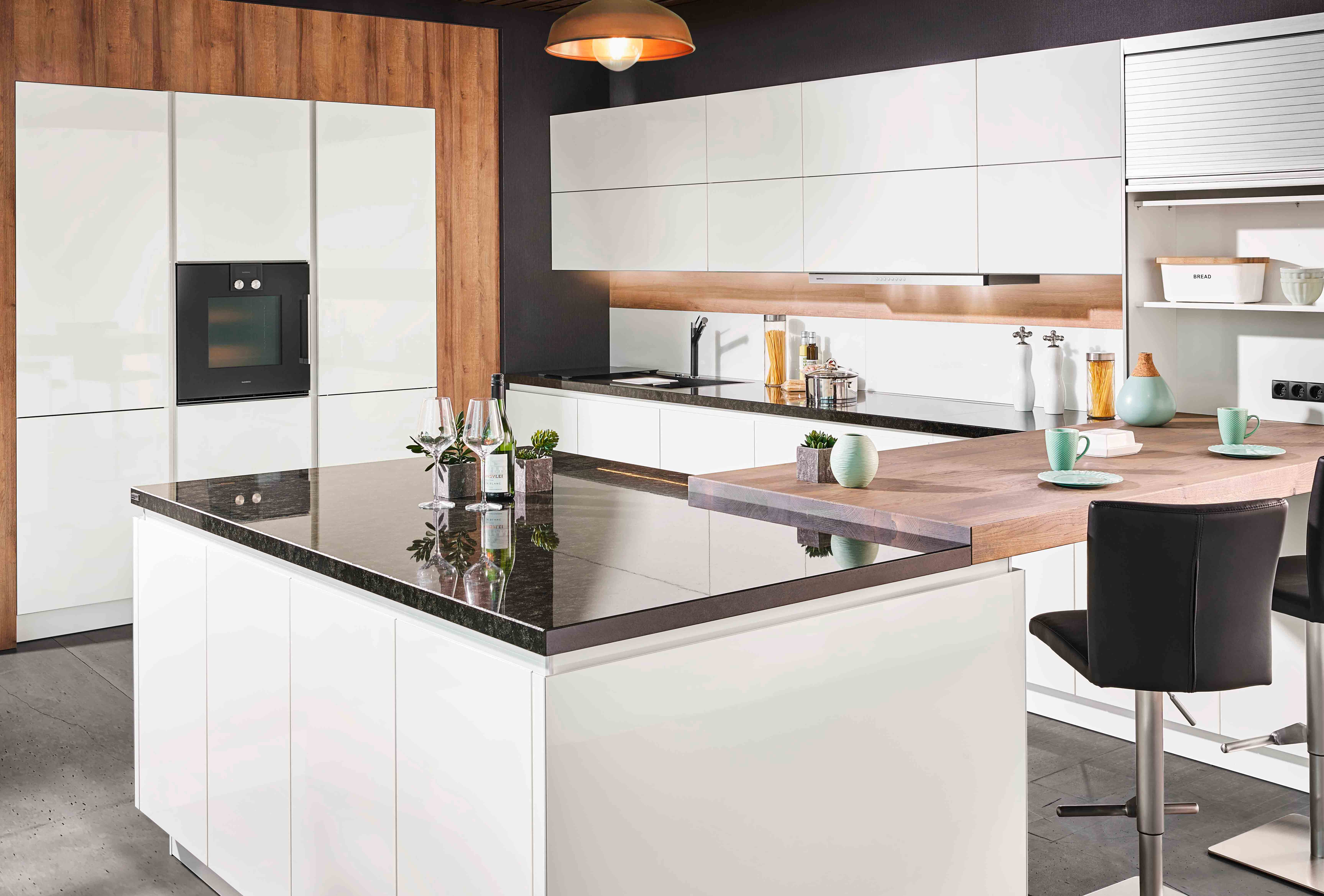 Wir geben Ihnen die Mittel dazu an die Hand: durchdachte Küchentechnik von höchster Qualität, grifflose Fronten mit edlen Oberflächen in vielen Farben. Und hochwertige Materialien für Arbeitsplatten wie Glas, Granit, Keramik und Edelstahl.