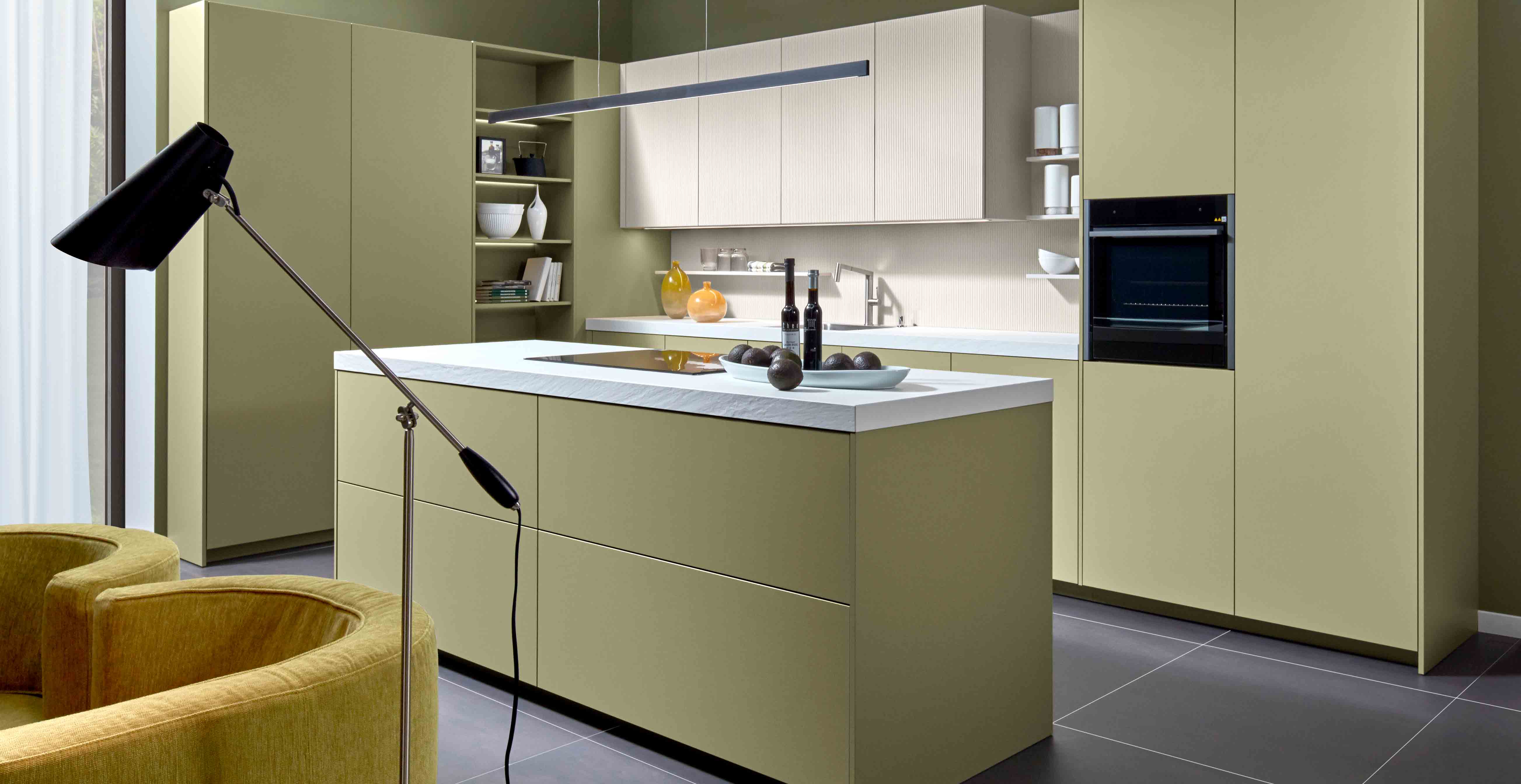 Eine Küche mit grünen Fronten hat eine besonders vitalisierende Wirkung auf unser Wohlbefinden und ebnet den Weg für mehr Entspanntheit und Ausgeglichenheit im Alltag. Die grüne Küche könnte somit bewirken, dass Sie sich noch länger in dem Raum aufhalten, um sich auf die Zubereitung Ihrer Lieblingsgerichte zu konzentrieren.