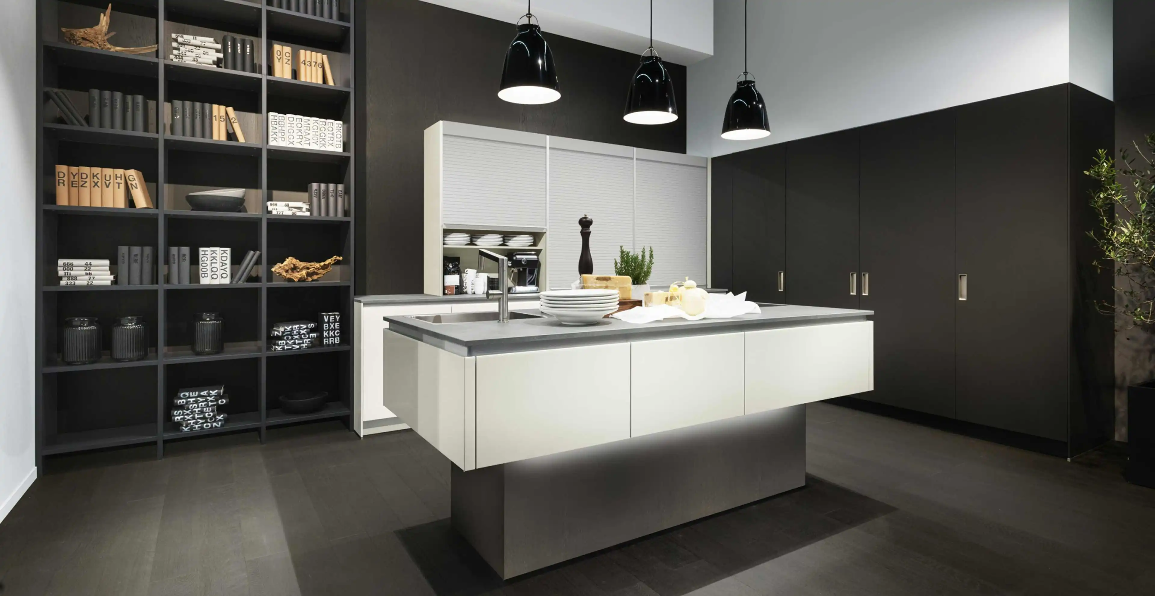 Die durchgezogenen Linien der Fronten sorgen für einen effektvollen Blickfang. Abgerundet wird die besondere Optik dieser Küche mit unsichtbaren Griffmulden, die sich an den Schränken und Auszügen innen liegend befinden. Der Clou: Durch die spezielle matte Beschichtung verfügen die Fronten über eine natürliche Antifingerprint-Eigenschaft. Diese Eigenschaft erleichtert die Reinigung und Pflege der Küchenfronten.